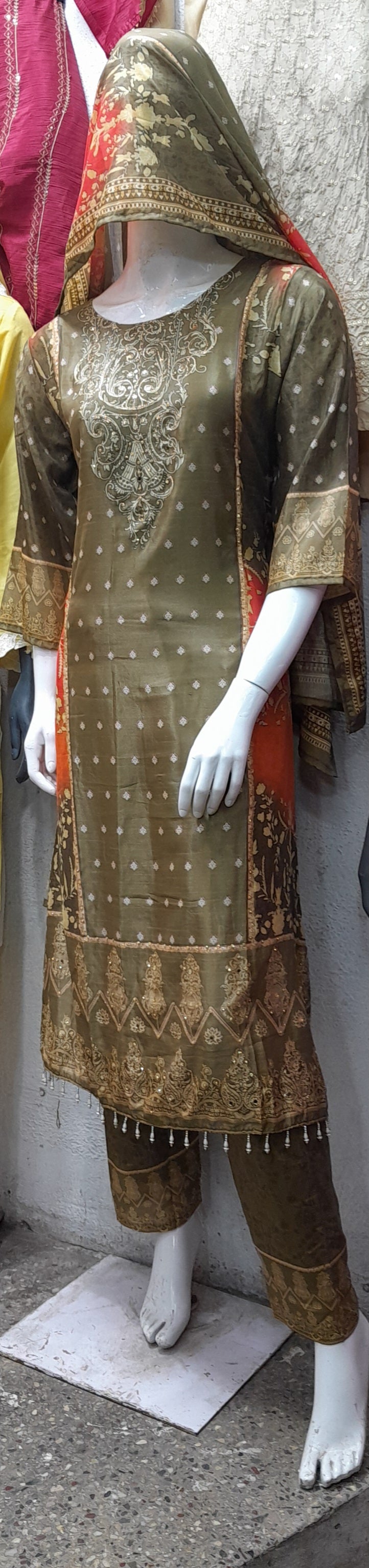 Step into festive elegance with this stunning Mehendi green ethnic wear for women, designed to bring out your graceful charm. The rich Mehendi hue adds a traditional yet refreshing touch, while the fish-cut silhouette enhances your shape with a flattering, flowy flare.