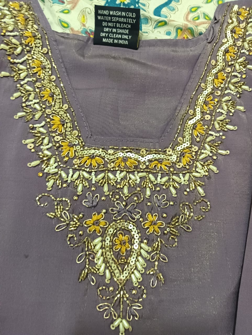 - Embroidery: Intricate zari and resham work adorned with delicate sequins, enhancing the overall grace of the outfit.